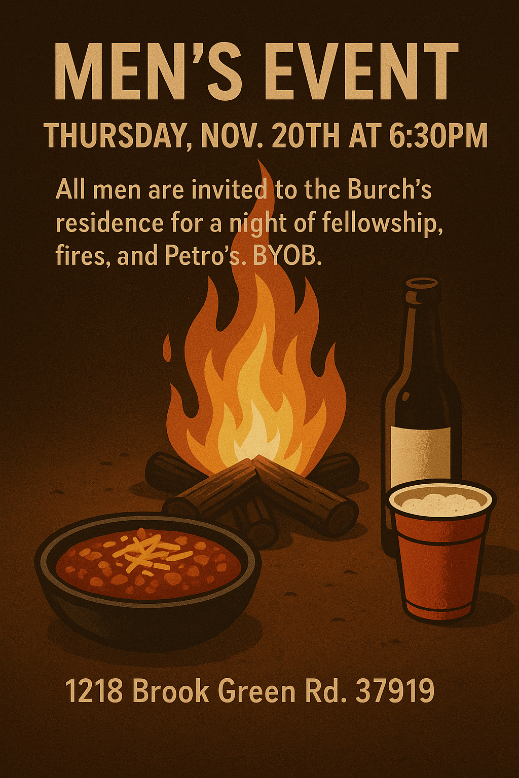 Join us for bbq, fellowship, and the start of NFL football Thursday, Sept. 4th at 7pm at the Kings’ home - 5601 Lyons View Pike Knoxville, TN 37919.